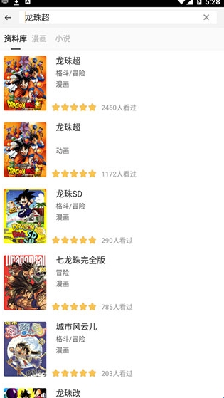 点击首页上方搜索标志输入关键字,即可查找到想要的资源,例如龙珠超。