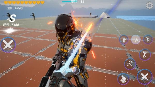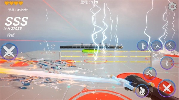 1、进入游戏后就会正式开始,正式开始后角色会自动前进,右边是玩家的攻击、钩索、跳跃按钮。
