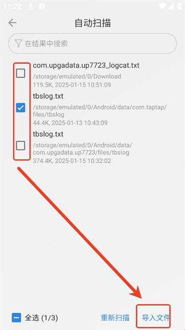 可选择手动导入、自动扫描、文件管理器等不同的导入当时,这里以自动扫描为例。