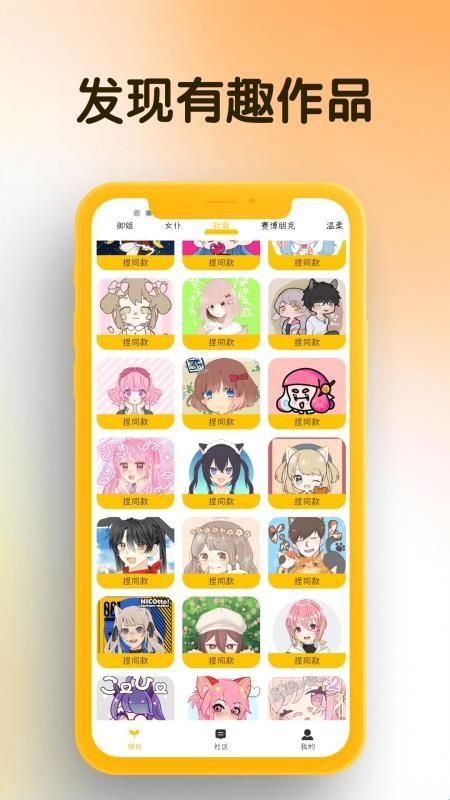 让你可以发现平台准备的头像素材,以后用户就能够快速的开启创作模式;