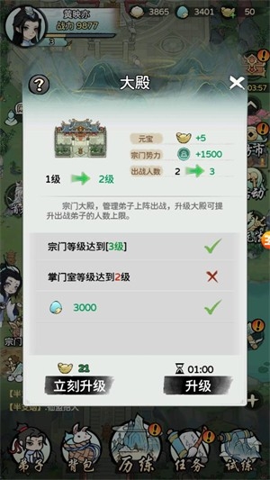 2、门派管理系统立体多维,每次升级都伴随新机制开放。