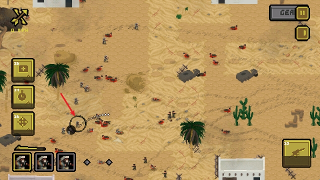 5、选中小兵之后,我们可以拖动屏幕瞄准,即可投掷出手榴弹。