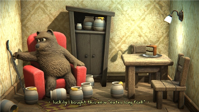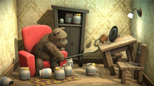2、利用房屋内的其他道具才能够到蛋糕,因为小熊一动不动。