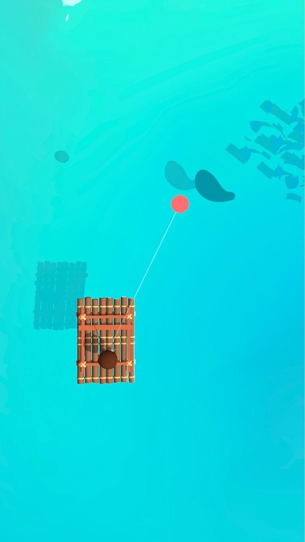 2、仔细观察操作界面的下方,你可以操控着木筏去抓鱼,利用工具抓鱼更快。