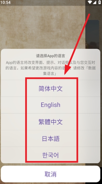 选择app语言。