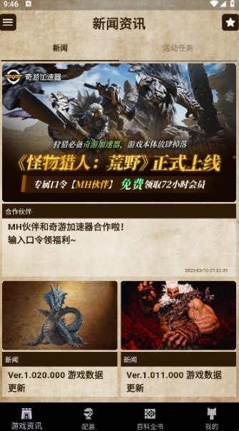 MH伙伴荒野又叫GameCat:MHWS,是一款专为怪物猎人游戏打造的辅助工具。用户可以通过这款软件轻松了解到游戏的各种资讯,如更新日志、怪物属性、装备、地图、材料分布等等所有游戏数据都可以在这里查看,提供一站式游戏辅助!心动不如行动,感兴趣的小伙伴快来下载体验一下吧!