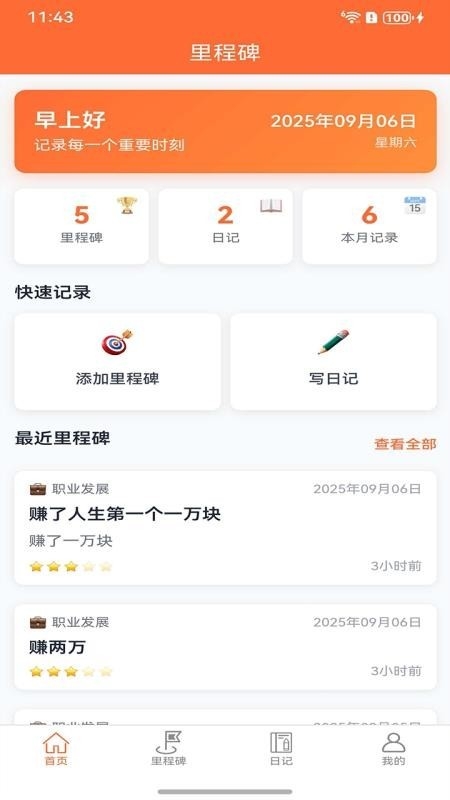 里程碑助手app是一款非常好用的日记记录和管理类工具软件,这款软件不仅可以帮助用户记录人生中各种重要的时刻,将各种精彩的瞬间记录下来,也可以帮助用户随时记录各种未完成的事项,并提醒用户及时完成,提高用户的工作效率。软件的界面简洁,功能丰富,内容多样,感兴趣的朋友们欢迎下载体验。