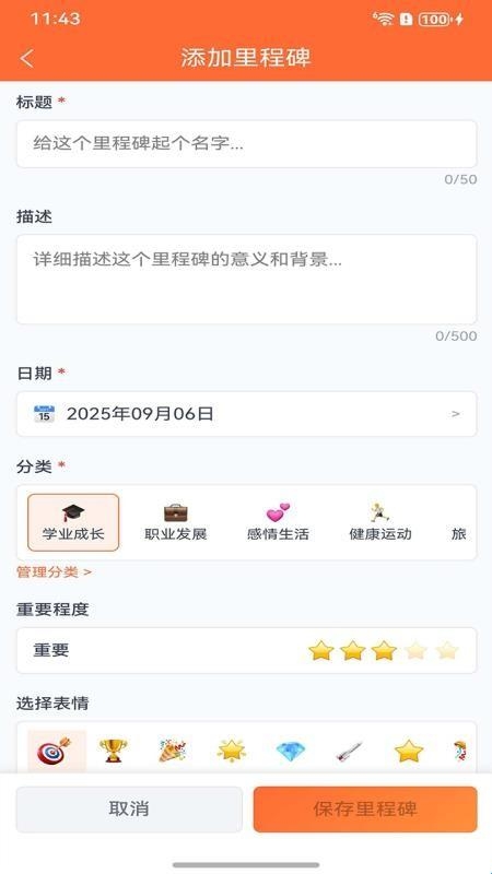 在应用中就能自定义添加创建里程碑,以便能专项管理自己的重要时刻;