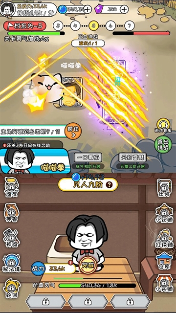 3、玩家在游戏中在灵气满了后,玩家要做的就是突破,只有突破后可以让玩家获得更多的内容