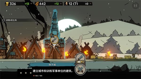 3、进入关卡后会有一段剧情,剧情结束后点击空地可以建造不同的建筑。
