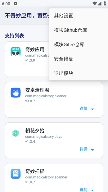 若修复无效,退出模块,在设备“应用管理”中找到不奇妙应用,清空其存储数据,重新激活模块即可。