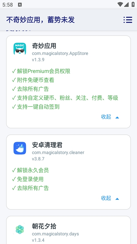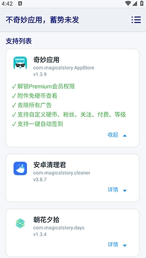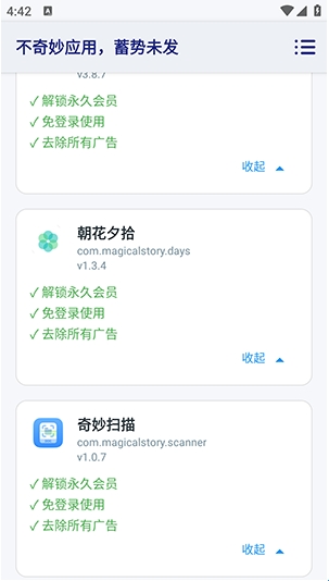 1、不奇妙应用专门针对奇妙系列应用的指定版本开发,解锁功能精准对应各应用的会员限制。