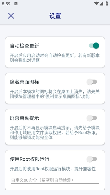 2、支持搭配LSPatch、太极等免Root框架使用,也可通过Root权限解锁完全体功能,兼顾“无Root设备用户”与“Root设备用户”的需求,适用范围更广。