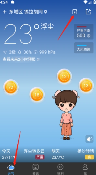 5、金币:墨迹天气极速版进入完成任务即可领取即可领取金币,而原本则是以天气预报为主。