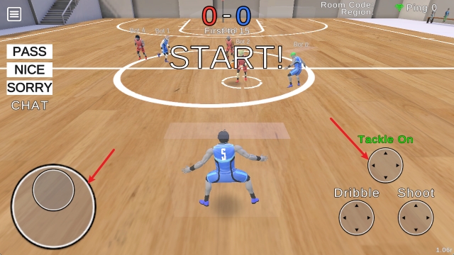 3、持球之后,点击右侧的Dirrble可以进行运球过人。