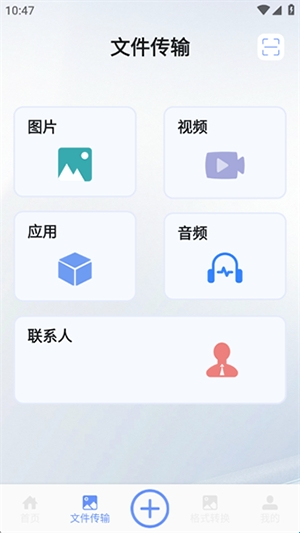 2、支持进行文件传输,图片、视频、应用、音频、联系人都可以一键传输;