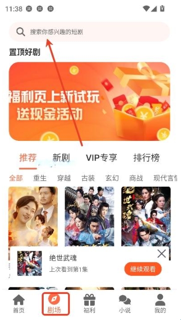 进入页面选择喜欢的短剧或点击上方的搜索框。