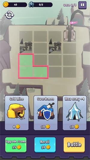 2、进入关卡后玩家需要在方块内放置不同的建筑,这些建筑只有放在方块内才会生效。