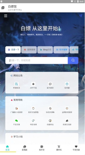 白嫖馆软件库,一款汇聚了超多网络资源的软件库合集。内置影视、小说、音乐、游戏、壁纸等超多类型的资源,用户只需要输入你需要查找的资源的关键词即可快速搜索。软件搭配最新的下载工具,只需几秒即可安装到手机当中,无需等待!有需求的小伙伴快来下载体验一下吧!