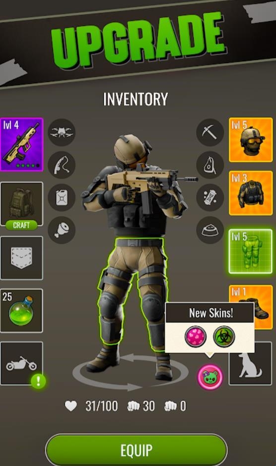 3、玩家需要和僵尸进行战斗,并升级自己的武器和装备。