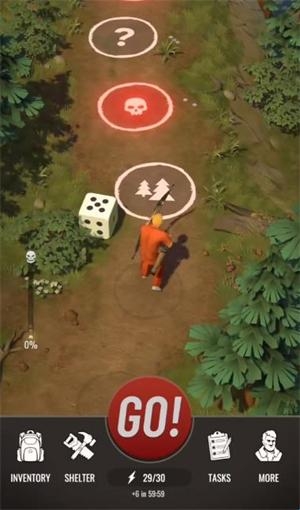 3、避难所建好后点击红色按钮可以投出骰子让角色前进,前方的地块上会有各种事件等你去触发。