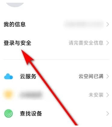 在帐号详情界面选择【登录与安全】选项,点击进入。