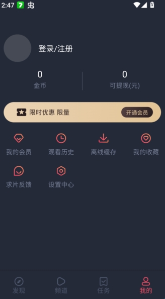 接下来我们可以通过点击右下角“我的”进入到主界面,然后选择登录自己的app账号。