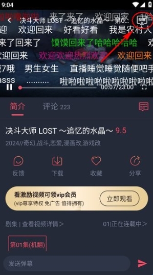 然后打开oneghg动漫,选择要观看的动漫进行播放,播放界面的右上角有个“投屏”按钮,点击一下;