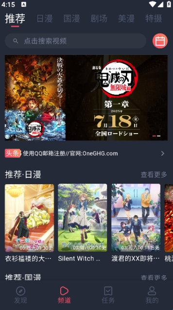 首先下载并安装Oneghg动漫共和国,安装完成后打开app进入到主界面。