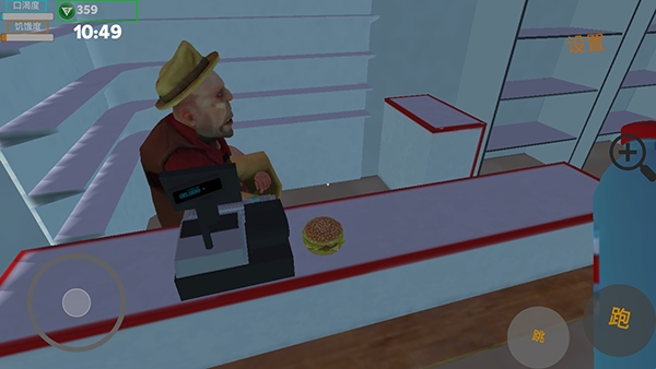 5、游戏中注意左上角人物的饥饿值和口渴值还有油表,当人过于饥饿或者是口渴时会移动缓慢,并且屏幕开始闪烁,此时需要尽快到商店去购买食物。