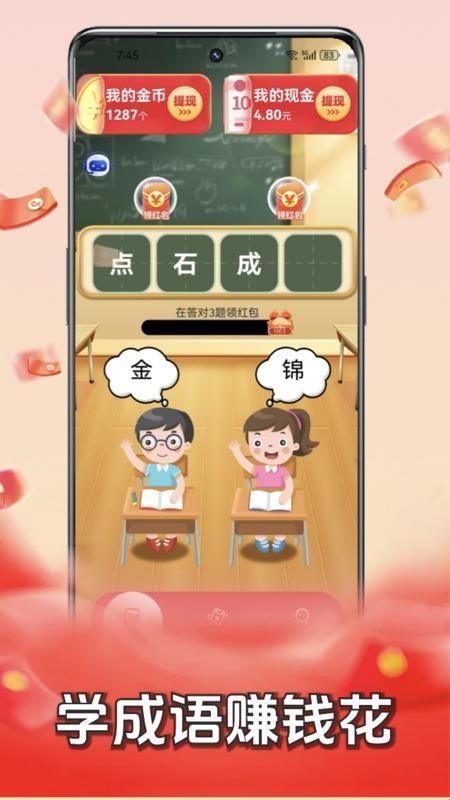 答成语赚钱app是一款非常好用的成语学习类工具软件,这款软件采用了成语小游戏的方式帮助用户了解和掌握更多的成语知识,此外,软件还设置了红包奖励功能,用户可以一边学习成语,一边获得收益,有利于提高用户的学习效率。软件的功能丰富,内容多样,界面简洁,操作方便,感兴趣的朋友们欢迎下载体验。