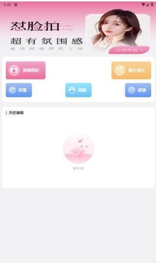1、安装并进入,首页展示了美颜相机、拼图、图片美化等功能。