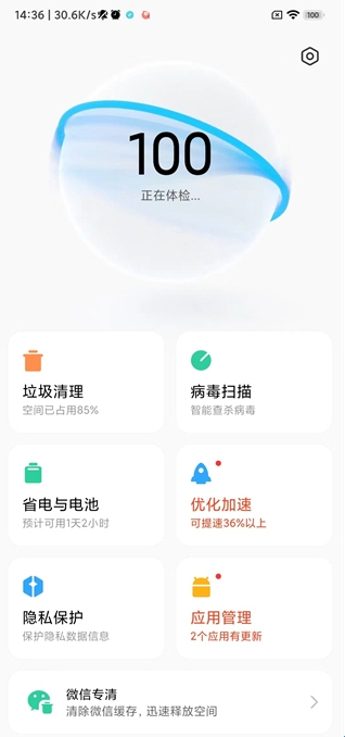 「优化加速」一键加速,手机运行又快又流畅
