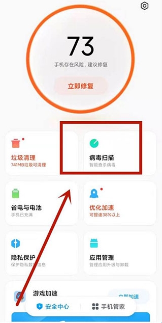 小米手机管家显示手机存在风险,建议修复怎么办