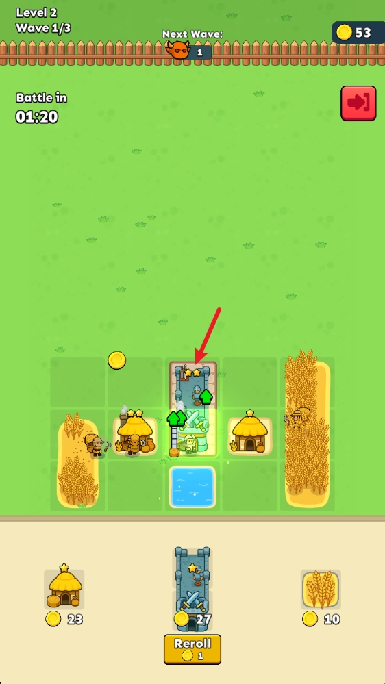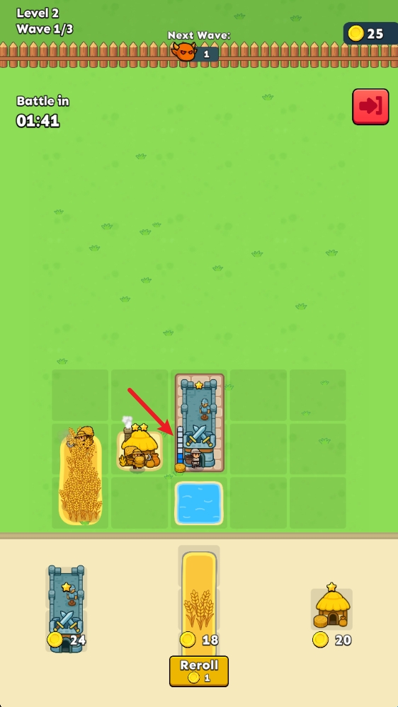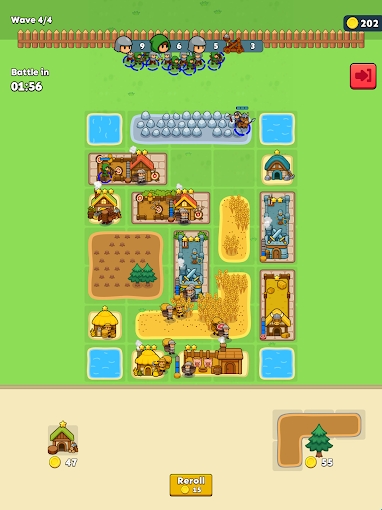 1、玩法十分的独特有趣,通过在格子中放置各种农田、森林来采集资源,利用这些资源来召唤士兵去战斗。