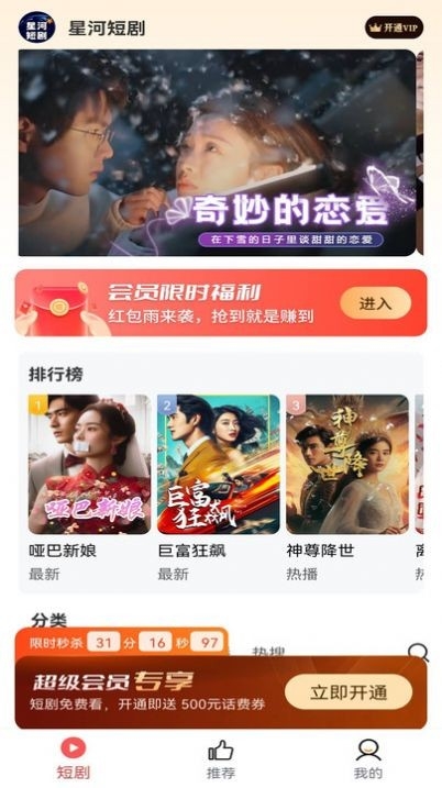 3、热门榜单:定期更新热门短剧榜单,让用户轻松发现最受欢迎的短剧作品。