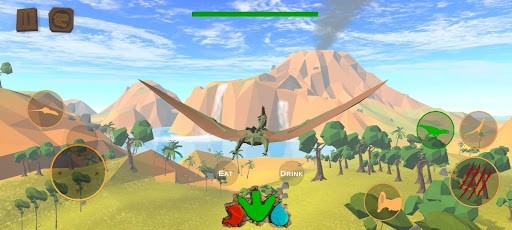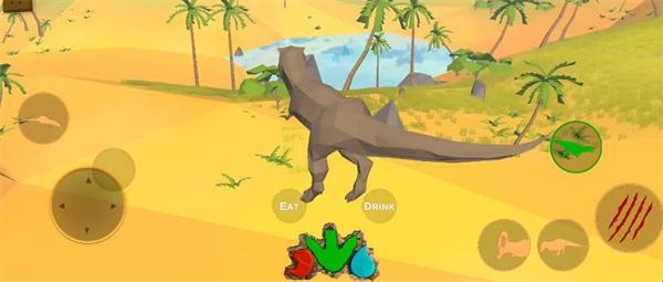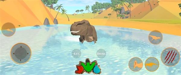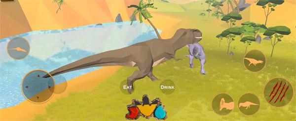 5、攻击其他恐龙可以将其吞食,吃掉对方可以恢复你的生命值和能量,饥渴值可以通过喝水来恢复。