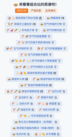 而所生成的菜谱也分为模糊、严格、生存三个模式