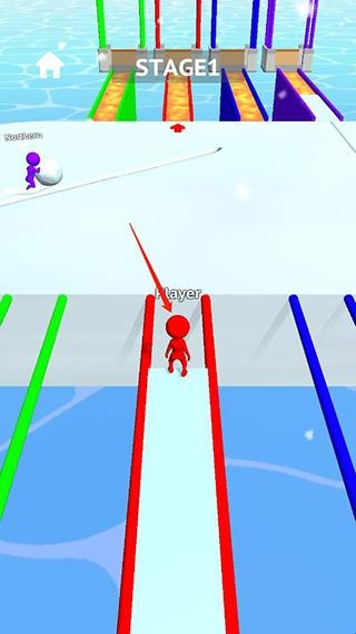 5、雪球足够大后,找到和你一样的颜色,利用雪球铺路过桥;