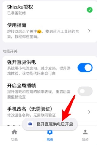 2.如需使用进阶功能,请切换至“高级”板块,此部分功能需通过Shizuku授权方可激活.