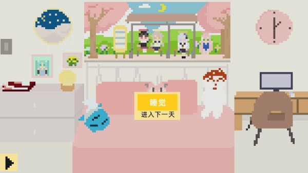 7、体力值消耗完毕时,能够前往卧室,让小春入睡,开启新的一天。
