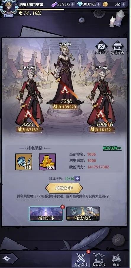 4、天梯,竞技场,排名赛,你可以和其他玩家一起一决高下,站在排位的最顶端,成为世界最强,探索未知的区域,获取稀有的奖励。