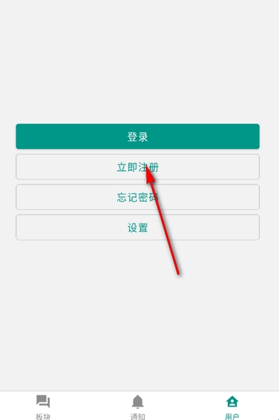在用户中点击立即注册