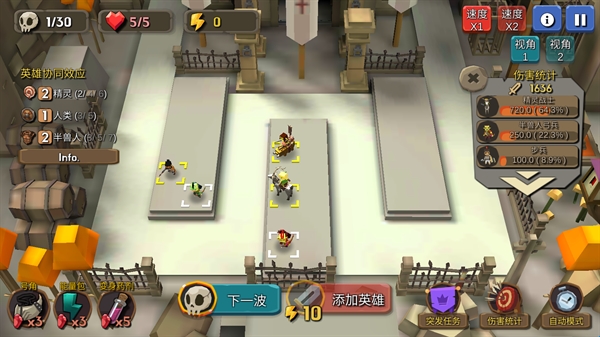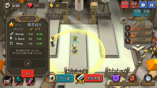 3、设置好士兵后,点击下一波即可开始正式战斗,敌人进入攻击范围就会被攻击。