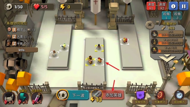 2、正式开始后,消耗能量即可召唤不同的士兵。
