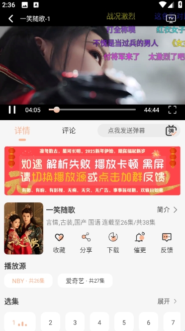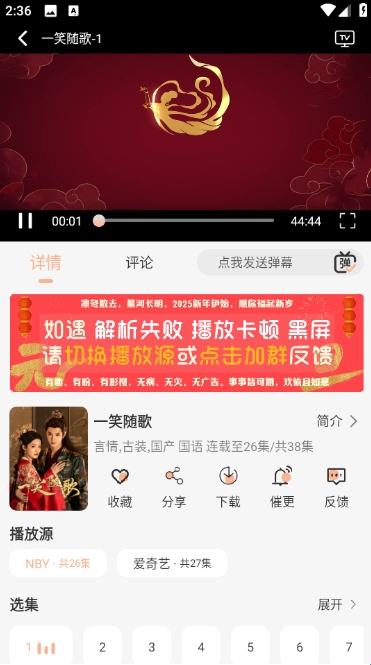 播放界面,可以直接查看这部电视剧的全部选集内容。
