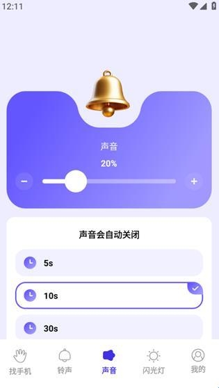 拍手寻机app是一款可以帮助用户快速寻找手机的工具软件,有了这款软件,用户只需要在房间中通过拍手的方式就可以轻松寻找到自己乱放的手机。此外,用户也可以设置各种有趣的铃声,或者对音量、闪光灯等进行设置调整,满足用户不同的使用需求。软件的功能丰富,内容多样,有需要的朋友们快来下载体验吧。