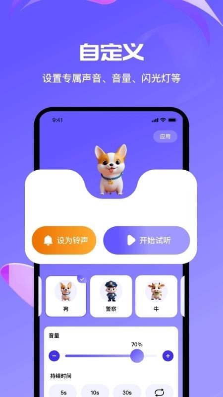 3、可在应用内浏览并试听不同类型的音效,选择心仪的音效设为寻机提示音,还能随时更换,满足个性化的声音设置需求。
