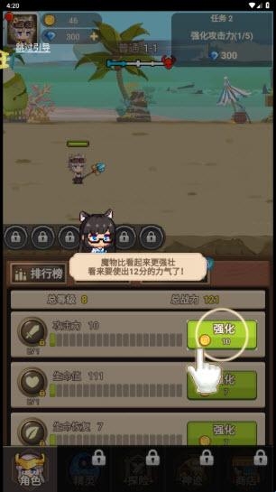 6、不要只顾着强化攻击力,生命值也很重要!否则是抗不过boss的伤害的。