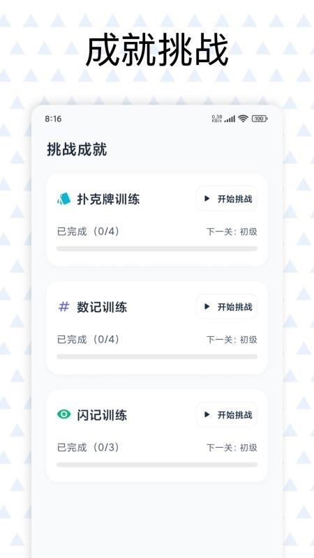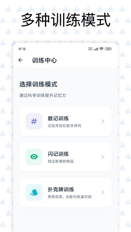 在这里就可以开启记忆力训练模式,按照软件的指导进行训练,帮助用户提升记忆力;